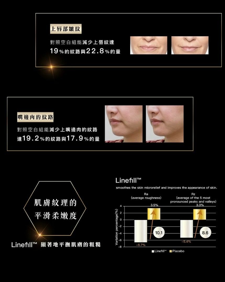 夜間厚敷滋潤保濕、鎖水修護、撫紋抗皺、改善與修護唇紋問題。