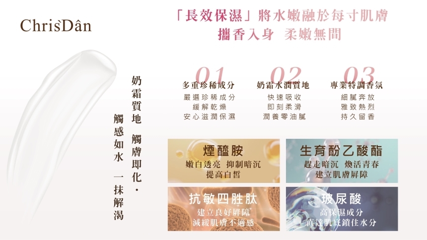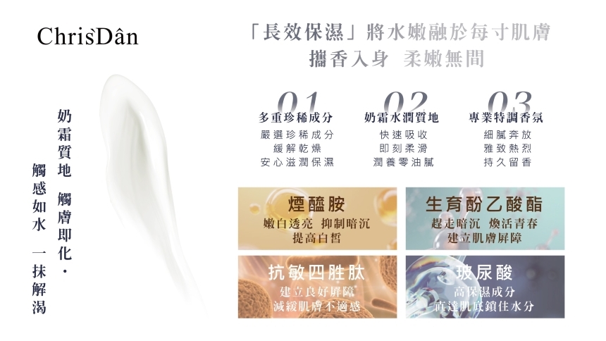 潔膚後,取適量於手心,均勻塗抹肌膚按摩至吸收即可