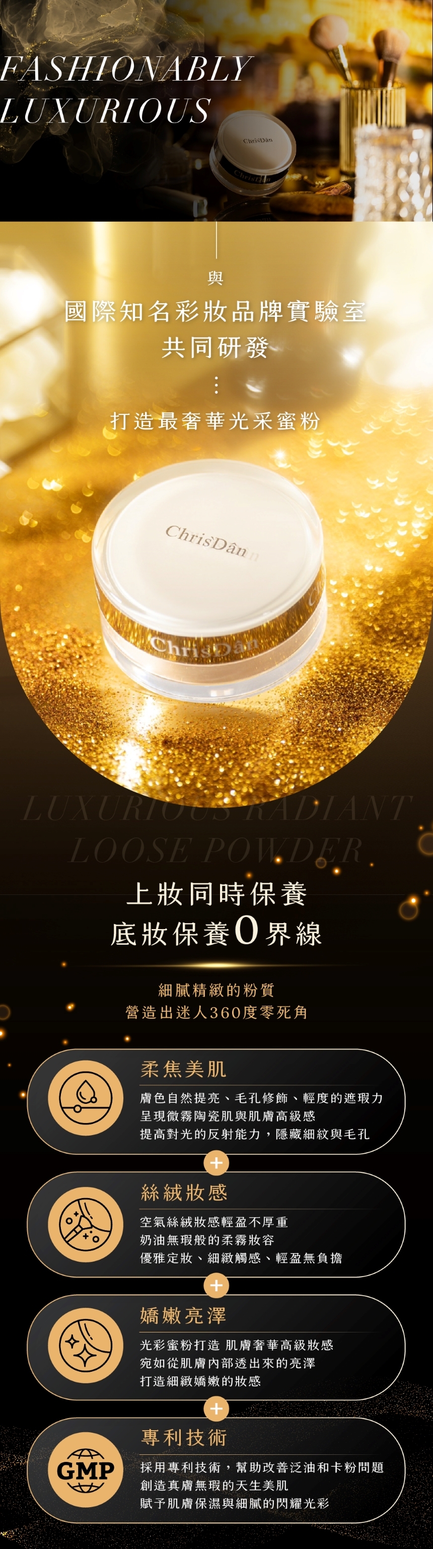 嬌嫩亮澤光彩蜜粉打造肌膚奢華高級妝感,宛如從肌膚內部透出來的亮澤打造細緻嬌嫩的妝感光采無瑕蜜粉專利成分: